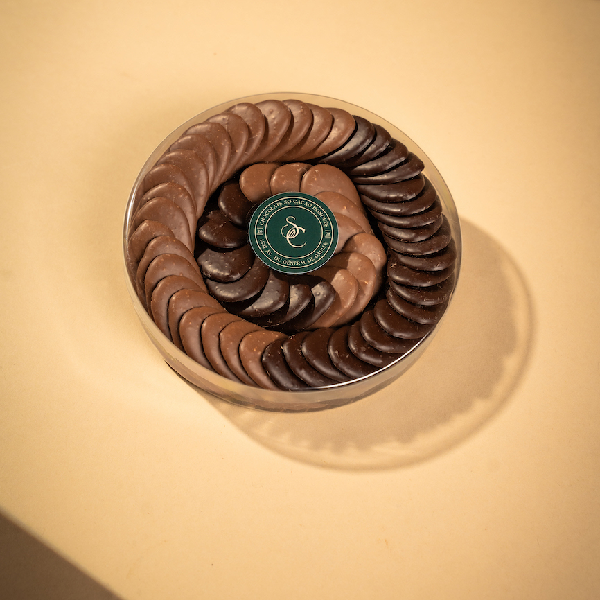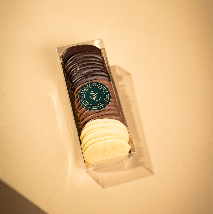 Découvrez nos tuiles en chocolat, fines et croquantes et gourmandes elles sont réalisées avec un chocolat de qualité et des éclats de noisettes. Un pur moment de gourmandise, parfait pour accompagner un café ou offrir en cadeau !